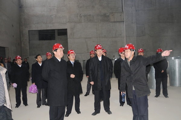 董事長(zhǎng)徐鵬強(qiáng)(前排右一)向許立全書(shū)記(前排左一)等領(lǐng)導(dǎo)介紹工程建設(shè)情況