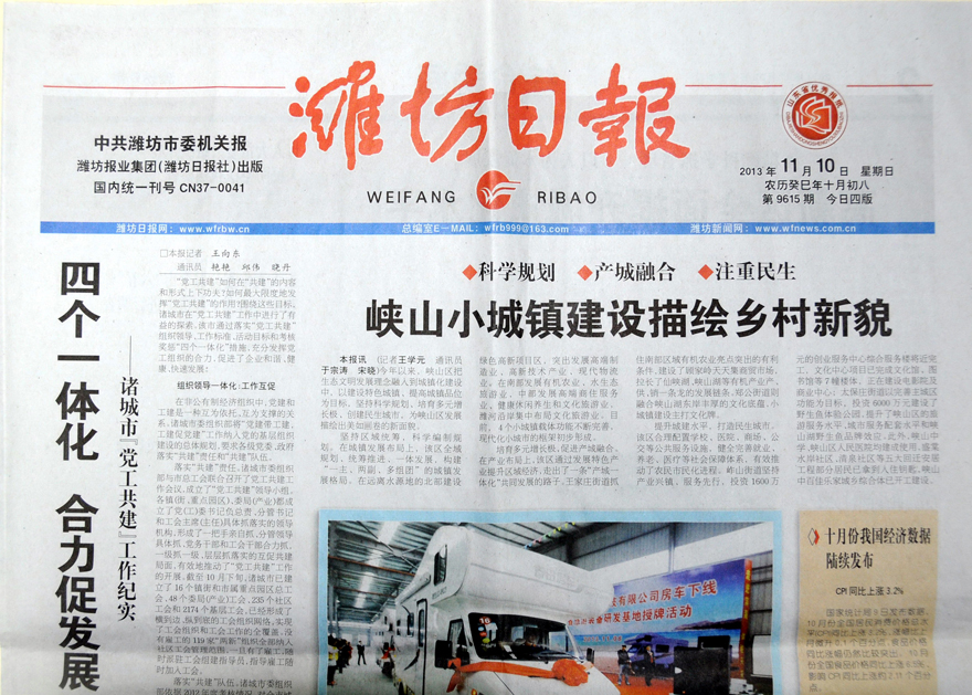 2013年11月09日,集團喬遷至高新區健康東街6999號,濰坊日報、濰坊晚報刊登集團喬遷慶典的報道。