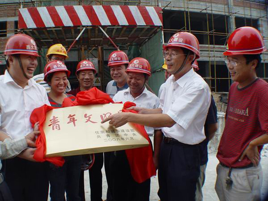 9月19日上午10時30分,為全國青年文明號——徐順福項目部舉行的揭牌儀式,在集團公司總部辦公樓前舉行。 揭牌儀式由市建設局副局長葛繼卿主持,山東省建設廳機關黨委常務副書記張普林,副書記金純龍,團委書記辛平,科長李學雷;共青團濰坊市委副書記李強;濰坊市建設局黨委副書記高峰;集團公司總經理、黨委副書記朱九洲,黨委副書記丁守起,監事會主席、紀委書記滕忠斌等出席了揭牌儀式。 在今天的揭牌儀式上,由辛平宣讀住宅和城鄉建設部、共青團中央的命名決定,全國青年文明號——徐順福項目部負責人徐順福做表態發言,高峰和張普林分別代表市建設局和省建設廳做了重要講話。 集團公司總部人員,部分基層單位、子公司的代表,各基層單位團組織代表,市建設局系統各單位團組織負責人共200余人參加揭牌儀式。 濰坊電視臺、濰坊日報社、濰坊人民廣播電臺、山東商報等多家媒體記者現場采集新聞。 榮獲全國青年文明號這一榮譽,這在集團公司的歷史上還是第一次。