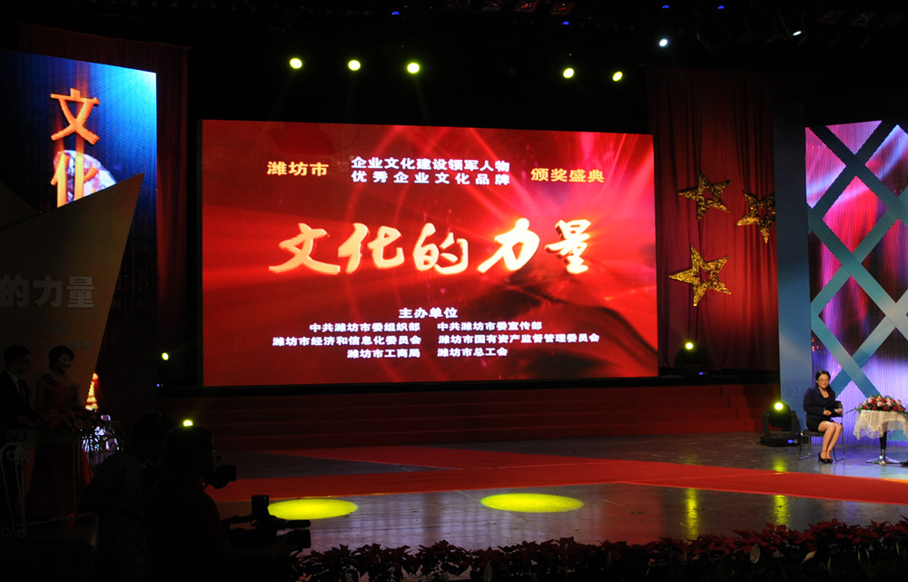5月18日晚7時30分,由濰坊市委組織部、市委宣傳部、市經信委、市國資委、市工商局、市總工會聯合主辦的“濰坊市企業文化建設領軍人物、優秀企業文化品牌頒獎盛典”在濰坊電視臺演播大廳隆重舉行。頒獎活動以《文化的力量》為主題,采用獲獎單位和個人登臺接受頒獎、專家訪談、文藝節目等形式交替進行。集團公司“昌大建設”文化品牌獲濰坊市優秀企業文化品牌;董事長、黨委書記徐鵬強獲濰坊市企業文化建設領軍人物稱號。濰坊市委副書記王獻玲,市委常委、宣傳部長初寶杰,市委常委、組織部長陳澤浦,市人大常委會黨組副書記、副主任劉明珂等領導出席頒獎盛典。