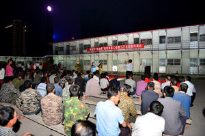 2015年5月21日晚,主題為“中國(guó)夢(mèng)?勞動(dòng)美”濰坊市總工會(huì)職工藝術(shù)團(tuán)慰問(wèn)演出在集團(tuán)中央商務(wù)區(qū)工地現(xiàn)場(chǎng)舉行。演出依托第四分公司實(shí)施,地點(diǎn)選擇了徐志明項(xiàng)目部辦公室室外小廣場(chǎng)。中央商務(wù)區(qū)的第二、第四、安裝、裝飾、第二裝飾、裝飾窗業(yè)分公司的工地員工代表、專業(yè)勞務(wù)工人現(xiàn)場(chǎng)觀看了演出。