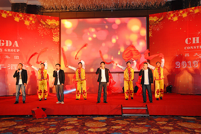 飛雪盛扮鳶都,一派銀裝素裹;瑞氣盈門昌大,處處歌悅舞動。2012年12月30日,雖是嚴寒的“二九一”,卻難掩昌大人如火的激情。此時的昌大,如一艘滿載著龍年盛運的航母,徐徐停靠港灣……這一年,昌大人全面發力穩增長,調整結構促轉型,在實踐自己城市綜合運營商目標的征程上大踏步前進,經濟技術、理念文化、品牌建設、思想道德實現歷史新突破,社會貢獻率實現新增長,特別是會展中心工程順利交付使用,卡納圣菲高端地產項目圓滿開放,高新花園住宅小區國優工程成功創建,北海路南擴工程高標準建成,在整個行業持續低迷的情況下,集團的綜合實力再次得到彰顯。一個“近者悅,遠者來”、有尊嚴的幸福昌大正在得到全面的建設;而在這一天,昌大人以自己的方式舉辦了2013年的新年酒會,歌舞慶龍年,金蛇迎祥瑞。 總經理朱九洲在新年致辭中,重點回顧了集團一年來的發展歷程。集團的各項事業取得了新的成績。 在這瑞雪映照、喜氣祥和的新年酒會上,集團員工自編自演自導了13個文藝節目,有第四、第八、安裝分公司自創的舞蹈《鮮花的祝福》;第一、第四、第五、安裝分公司自編的舞蹈《江南STYLE》;機施分公司自編的小品《超幸福售樓處》,市政公司自創的小品《工地探親》,第七分公司自編舞臺劇《旅途》,第一分公司自創的啞劇《蓋章》;第二、第八分公司合演的相聲《你是我兄弟》;第六分公司和機施分公司自編的MV歌曲《父親》;集團總部和第六分公司合作的歌伴舞《大中國》,第二、第五、第八分公司和泰和公司聯袂的歌伴舞《舉杯吧,朋友》,市政公司自編歌伴舞《快樂崇拜》;裝飾分公司演出的京劇《轅門射戟》新段;第三分公司自創健美操《淑女愛運動》,這些節目,或氣勢如宏、或舞美歌悅、或滑稽幽默、或時尚奔放、或優雅沉香、或豪放激情,以此盡展昌大人2012年愉悅的心情。與往年相比,今年的文藝演出,規模更大,節目類型更多,節目包裝效果更好,更貼近企業實際。還有一個最突出的亮點是今年的節目編排更大范圍地突破了單位界限,實現了單位間的大聯合大串燒。在年底各項業務更為繁重的時候,全體演服人員自覺克服工演矛盾,以極大的熱情投入新年酒會的準備工作,許多單位的演員白天忙碌一天,主要靠晚上或加班進行排練,有些演職員因為太勞累病倒了,還堅持排練和工作,表現出了強烈的責任心和極高的集體榮譽感。集團總部相關部門全力保障文藝演出和酒會的各項籌備工作,確保了新年酒會的順利實施。