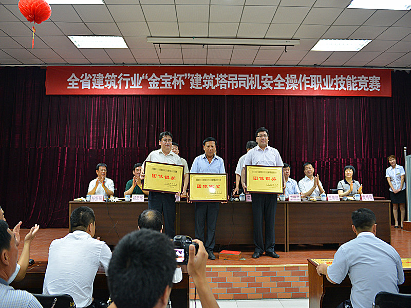 2014年6月19日,由山東省建設工會、山東省建筑安全監督站、濰坊市建設局主辦,濰坊市質量安全監督站、金寶職業培訓學校協辦的“山東省建筑行業‘金寶杯’建筑塔吊司機安全操作職業技能競賽在濰坊金寶職業培訓學校圓滿落幕。集團組隊代表濰坊市參加比賽,獲得團體銀獎,操機手王來春榮獲個人金獎。