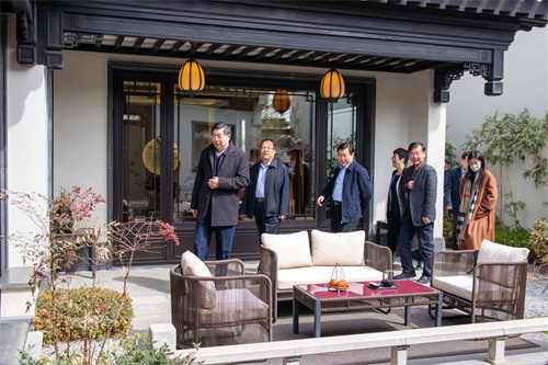 2023年3月25日上午,山東省住建廳廳長王玉志到集團中頤龍湖康養(yǎng)小鎮(zhèn)項目參觀調(diào)研,安丘市委書記賈勤清,市住建局黨組書記、局長鐘光文、副局長戴玉霞,集團董事長徐鵬強陪同調(diào)研。王玉志廳長依次參觀了小鎮(zhèn)服務(wù)中心、頤園中式合院園區(qū)與樣板間、小鎮(zhèn)頤樂康養(yǎng)中心。聽取了小鎮(zhèn)總體規(guī)劃布局匯報,對中式合院的建筑文化、小鎮(zhèn)宜人的自然環(huán)境以及康養(yǎng)配套運營方面的精心考量與服務(wù)經(jīng)驗給予了高度評價。