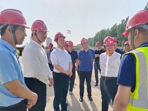 2023年5月16日下午,國務院安委會綜合檢查組對集團七建公司施工的昌樂人民醫院新院區二期項目進行了督導檢查。督導檢查組由應急管理部調查統計司安全監察專員李豪文帶隊,山東省應急廳副廳長彭愛田、昌樂縣縣長桑海強、副縣長張英杰陪同檢查。集團公司安全總監孟憲禮出席活動。
