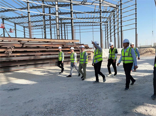 在多哈公司正在施工的水岸公寓6#樓及Simex物流園項目施工現場,徐鵬強董事長看望慰問項目施工人員,詳細了解工程施工進度、存在問題和員工生活等情況,并同現場一線人員座談交流。