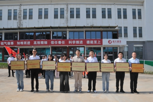 下午,在集團二建公司總承包施工的位于青州的濰坊工程職業學院新建學生公寓樓項目現場,舉行了全國、山東省、濰坊市三級青年文明號授旗儀式暨2023年度先進基層團組織頒獎儀式。兩支全國“青年文明號”、四支山東省“青年文明號”、兩支濰坊市“青年文明號”紅旗列列,彰顯光榮的歷史和突擊的力量;九個先進基層團組織獎牌生輝,昭示青春的燦爛和奮斗!