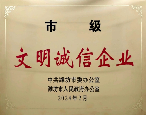 來自濰坊市精神文明建設委員會消息,集團公司榮獲2023年度“濰坊市文明誠信企業”榮譽。同時順利通過集團公司市級文明單位年度(2023年度)復查。