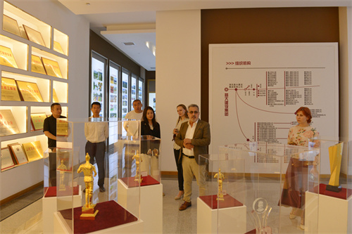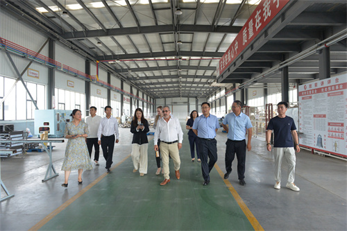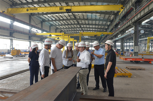 來訪期間,菲祖利先生一行四人先后參觀了昌大建科鋼筋加工、鋼結構以及預制構件車間,第三裝飾幕墻公司門窗加工車間,參觀了集團公司企業(yè)展廳、建筑史館。