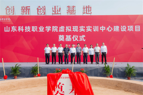 2025年7月17日上午,山東科技職業學院虛擬現實實訓中心項目奠基儀式在項目現場隆重舉行。學院黨委書記鄭德前,集團公司總裁朱九洲,山東省工程咨詢院黨組成員、副院長何健,山東建筑大學設計集團有限公司董事長、總經理李端杰,招商銀行濰坊分行黨委書記、行長潘兆強,學院黨委委員、紀委書記秦建坤,學院黨委委員、副校長徐曉雁、董傳民,學院副校長張振東出席奠基儀式。