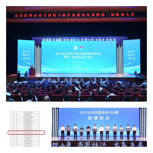 2025年8月19日,2025山東民營企業百強系列榜單發布會暨第二屆臨商大會開幕式在臨沂市舉行。集團公司副總裁劉雁冰參會并代表集團領獎。省人大常委會副主任,省工商聯主席、省總商會會長王隨蓮,臨沂市委書記張寶亮分別致辭,省委統戰部副部長、省工商聯黨組書記張鯤等與會領導為上榜企業代表頒牌,省工商聯黨組成員、副主席陸怡發布系列榜單,省工商聯副主席郭建禮發布分析報告。